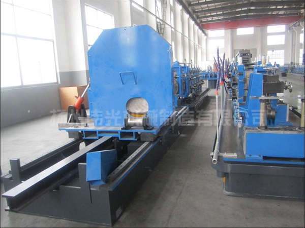 用途:是焊管生產(chǎn)線上的重要設(shè)備,它是在高速行進(jìn)中自動(dòng)精度定尺鋸切各種形狀的管材,由于采用了快速高精度的STD控制系統(tǒng)和機(jī)械系統(tǒng),定尺及同步性能好,機(jī)械傳動(dòng)可靠,所以本機(jī)具有快速性能好,精度高的特點(diǎn)。