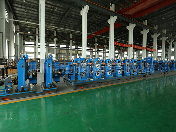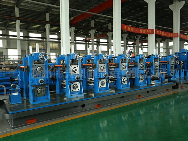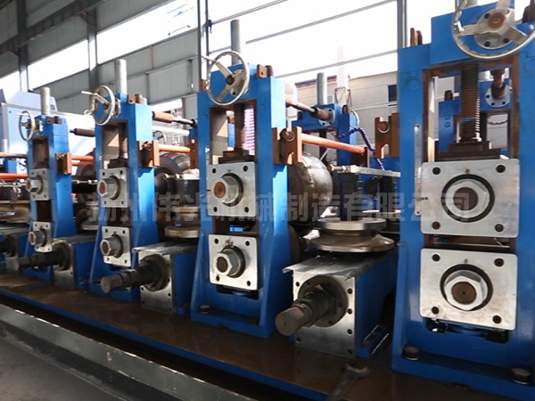 流程:上料→開(kāi)卷→直頭→夾送矯平→剪切對(duì)焊→活套→成型、高頻擠壓焊接、去除外毛刺、焊縫磨光、定徑、粗矯直→飛鋸定尺→輥道→檢驗(yàn)收集→打包→稱重→標(biāo)記→入庫(kù)